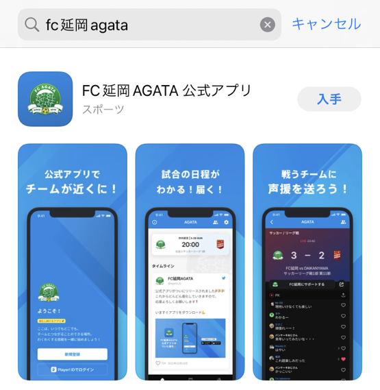 AppStoreもしくはGooglePlayで「FC延岡 AGATA」と検索