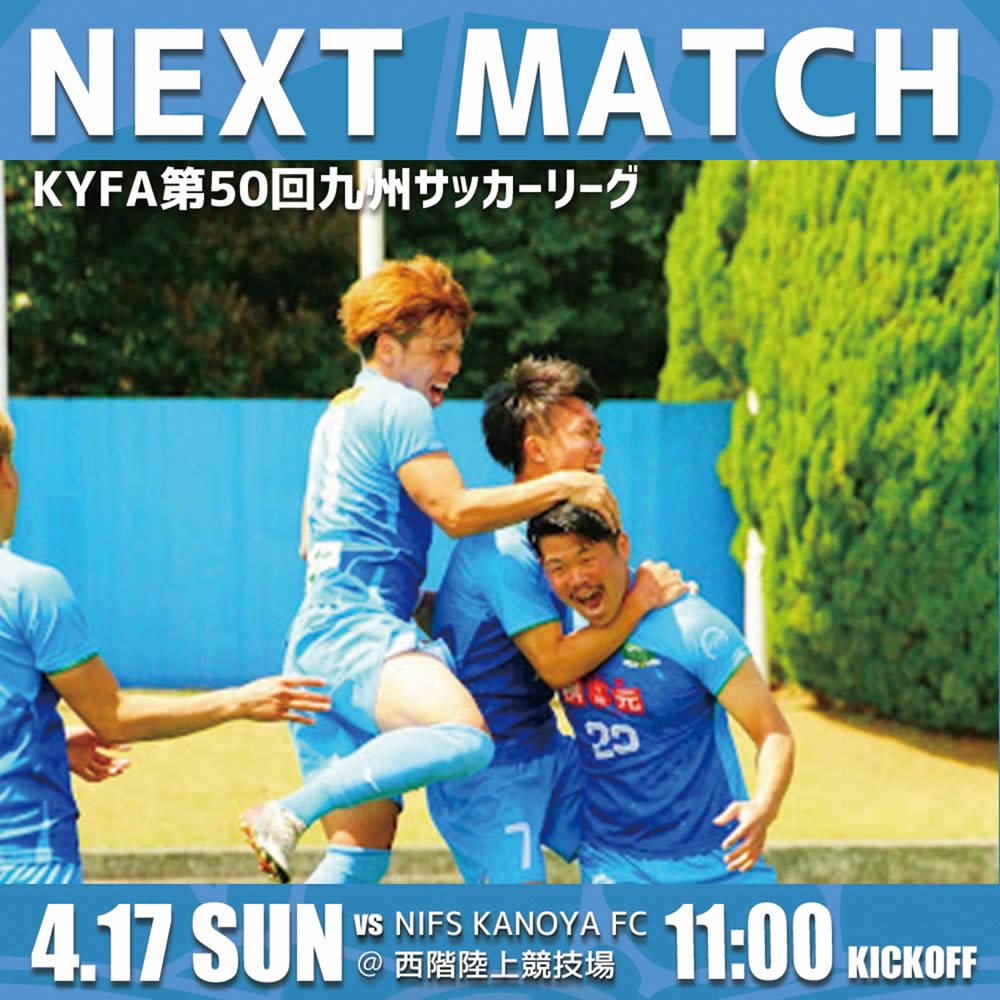 2022年 第50回九州サッカーリーグ第6節FC延岡AGATA vs NIFS KANOYA FCが4月17日(日)に延岡市西階運動公園陸上競技場にて下記の通り開催します(入場無料)。