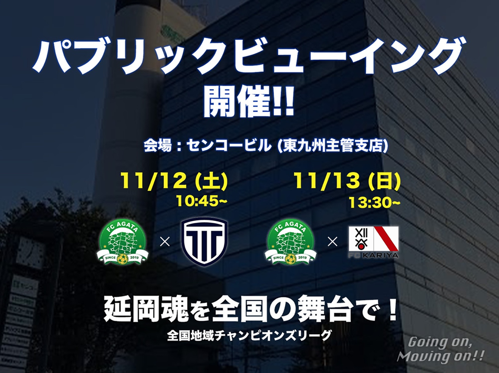 この度、2022年11月12(土), 13(日)に行われる全国地域チャンピオンズリーグ2022の試合のパブリックビューイングが、延岡市内センコービル(東九州主管支店)にて開催されることが決定いたしました。