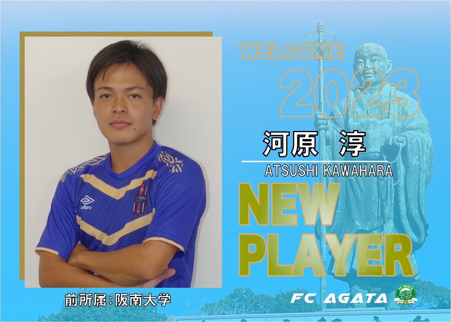 この度、阪南大学より河原淳選手が加入しましたので、お知らせします。