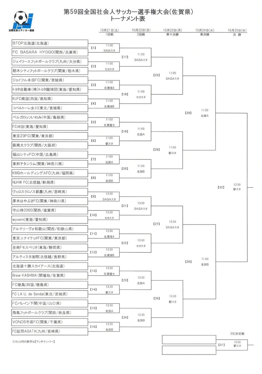 第59回全国社会人サッカー選手権大会 組み合わせ決定のお知らせ