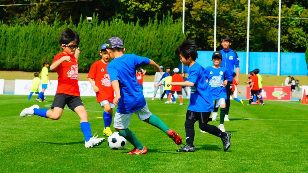 試合終了後より、選手が戦ったピッチ内にて選手と一緒にサッカーができます。試合後まで全力で遊び尽くそう!