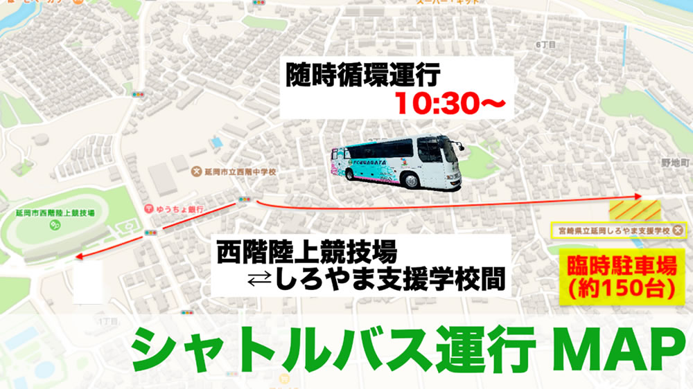当日10:30から試合終了後まで随時シャトルバスを運行いたします。