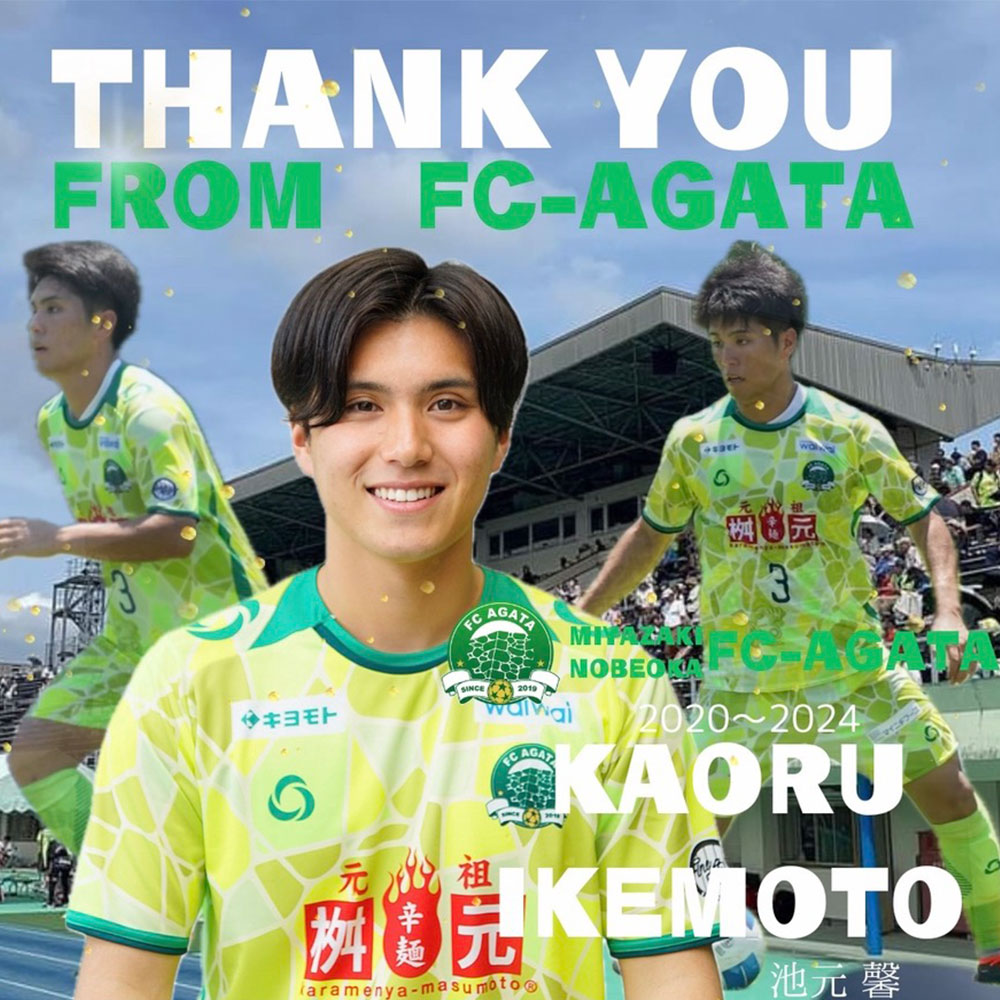 自分の与えられた役割を全うし、FC延岡AGATAの昇格の力になれるよう頑張りますので今後ともよろしくお願いします。