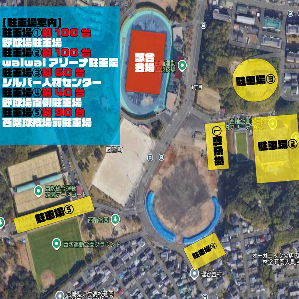 駐車場⑤西階球技場前駐車場 約90台