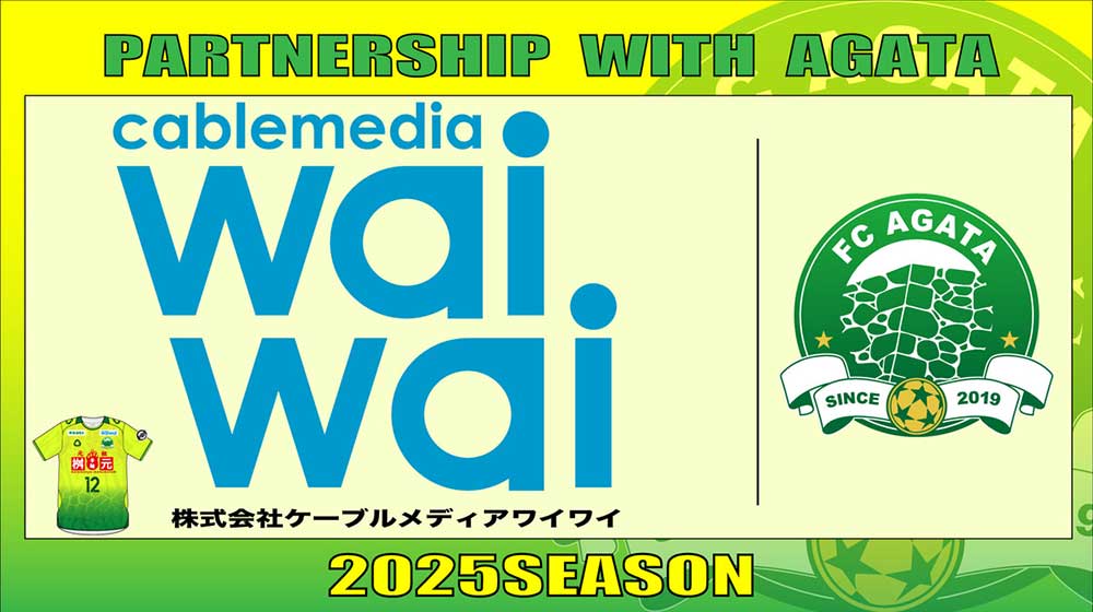 平素より、FC延岡AGATAの活動にご理解・ご支援賜りまして誠にありがとうございます。 この度、FC延岡AGATAは、株式会社ケーブルメディアワイワイ様(本社:宮崎県延岡市愛宕町2丁目1-12、代表取締役社長:未次稔様)とパートナー契約を継続し、2025シーズンもご支援いただくこととなりましたので、下記の通りお知らせいたします。 また株式会社ケーブルメディアワイワイ様はユニフォーム(鎖骨左)に掲示させていただき、 2025シーズンも共に戦います!
