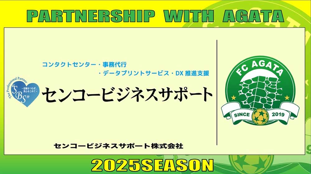 平素より、FC延岡AGATAの活動にご理解・ご支援賜りまして誠にありがとうございます。 この度FC延岡 AGATAは、センコービジネスサポート株式会社様(本社:宮崎県延岡市天下町 1176-13、代表取締役社長:森岡直人様)とパートナー契約を継続し、2025シーズンもご支援いただくこととなりましたので、下記の通りお知らせいたします。