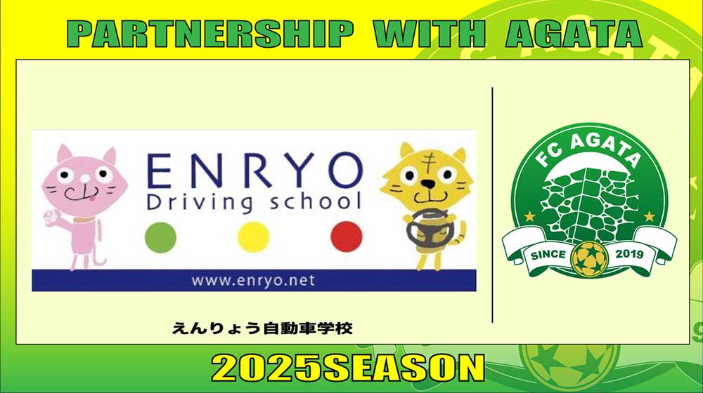 平素よりFC延岡AGATAの活動にご理解・ご支援賜りまして誠にありがとうございます。 この度FC延岡AGATAは、延陵自動車学校様(宮﨑県延岡市松山町1221 代表者:松原明彦様)とパートナー契約を締結し、2025シーズンよりご支援いただくこととなりましたので、下記の通りお知らせいたします。 えんりょう自動車学校の皆様、ありがとうございます。 ともに延岡を盛り上げましょう!