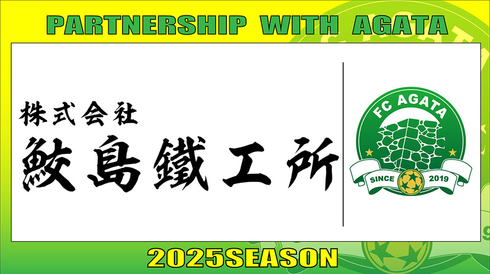 平素よりFC延岡AGATAの活動にご理解・ご支援賜りまして誠にありがとうございます。 この度FC延岡AGATAは、株式会社鮫島鐵工所様(本社:延岡市大武町39番地12 代表者:鮫島 智恵子様)とパートナー契約を締結し、2025シーズンよりご支援いただくこととなりましたので、下記の通りお知らせいたします。 株式会社鮫島鐵工所様には、この度FC延岡AGATAへのご支援を賜り、心より御礼申し上げます。 地域を支えてこられた企業様にパートナーとして加わっていただけることは、クラブにとって大きな力となります。 今回のパートナー締結を機に、地域に根ざした活動をさらに進め、延岡の未来づくりに貢献できるクラブを目指してまいります。 今後ともFC延岡AGATAへの温かいご支援・ご声援をよろしくお願い申し上げます。