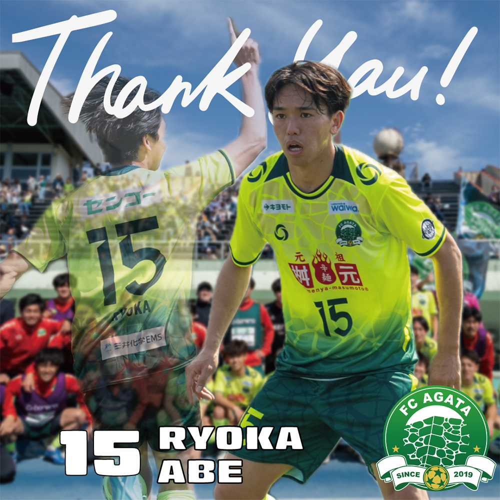この度、阿部遼海選手が今シーズンをもちまして退団することとなりましたので、お知らせします。