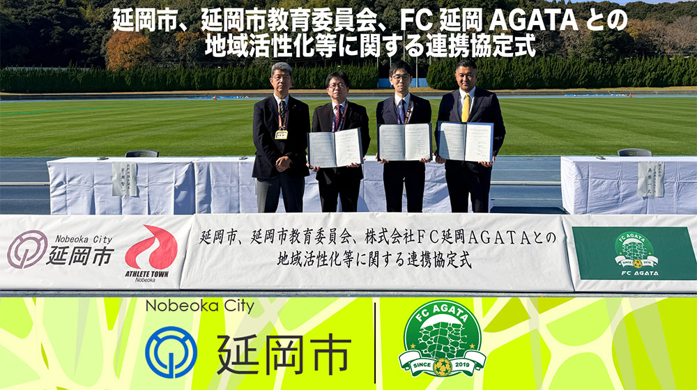 延岡市、延岡市教育委員会、FC延岡 AGATAとの地域活性化等に関する連携協定締結式を行いました